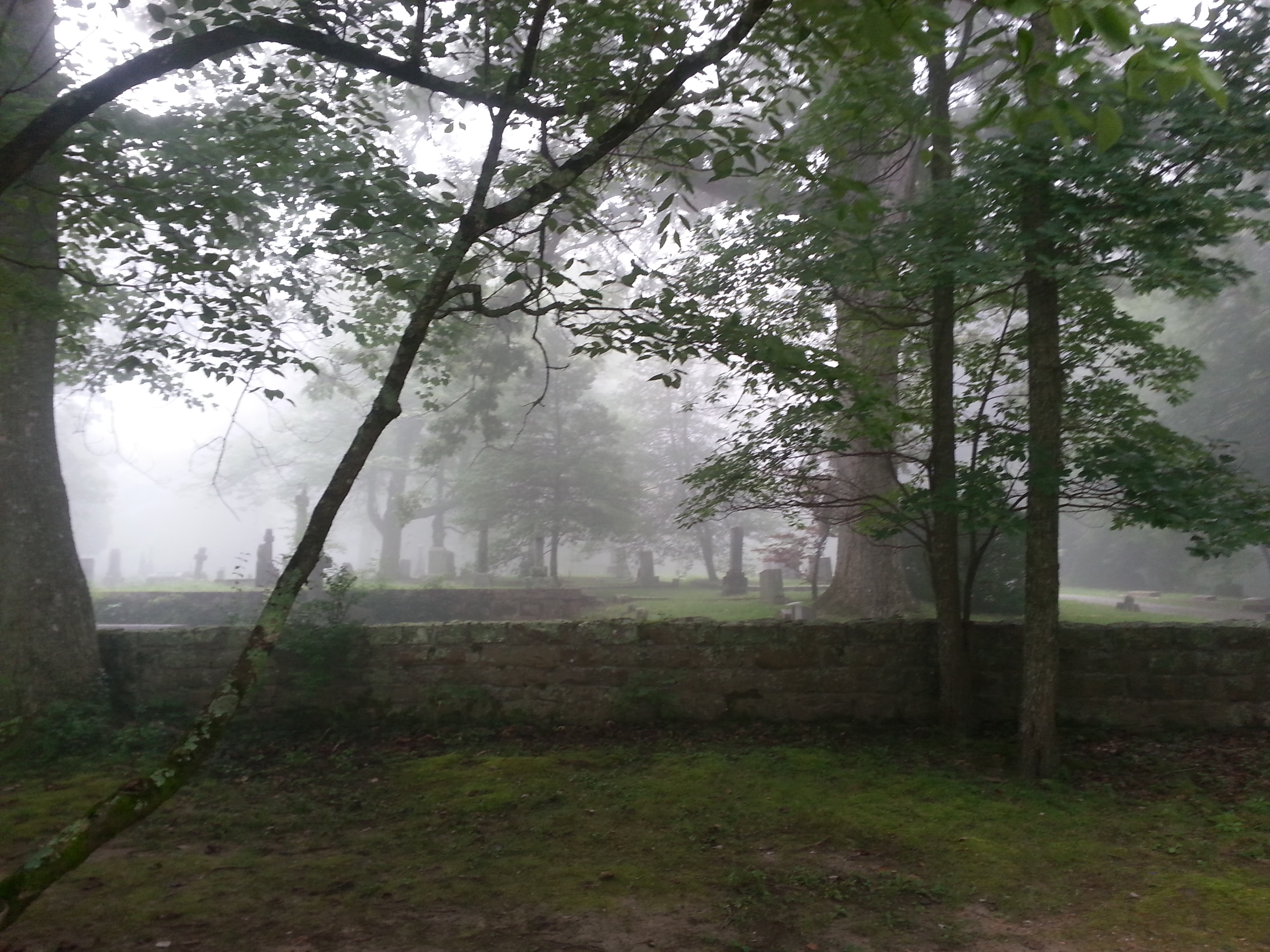 Finally, as a sort of summer wrap-up, I’d like to say thank you to all the great friends I made at the Sewanee Writers Conference last month. Thanks for being such a welcoming group, and thanks to the staff who worked so hard! I loved getting to hear what my peers were working on–as well as what the greats are up to. Readings by Robert Hass, Tim O’Brien, A.E. Stallings, Claudia Emerson, Mark Strand, and many more bowled me over–and in some cases, brought me to tears. The picture here captures the last morning there, when fog shrouded the graveyard where Allen Tate is buried.